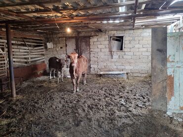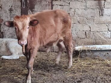 Satılır: dana (buzağı) - Növ: iribuynuzlu heyvan, açıq qəhvəyi rəngli - Cins: yerli tip (şəkillərə əsasən qısa tüklü, yığcam bədən quruluşlu) - Yaş: təxminən bir neçə həftəlik - Qulaqlar geniş, pe...