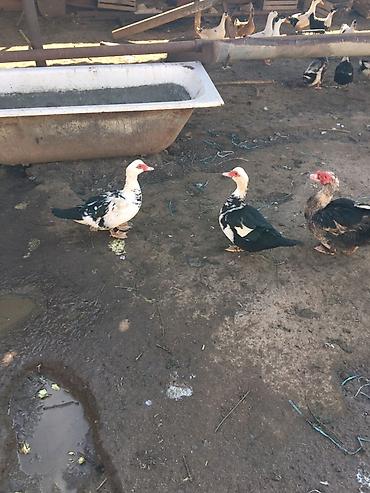 Satış: yerli təsərrüfatdan qarışıq ev quşları Təsvir: - Muskoviy ördəkləri (indoutka) – qara, ağ, qəhvəyi və ala rənglərdə, həm erkək, həm dişi fərdlər. - Toyuq və xoruzlar – müxtəlif rəng və növl...
