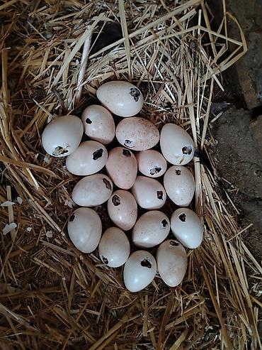 - Təbii şəraitdə saxlanılan bildirçinlərdən yığılmış, xırda ölçülü, krem-ağ və xallı qabıqlı yumurtalar.