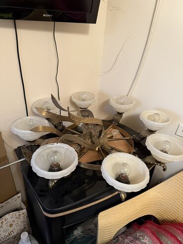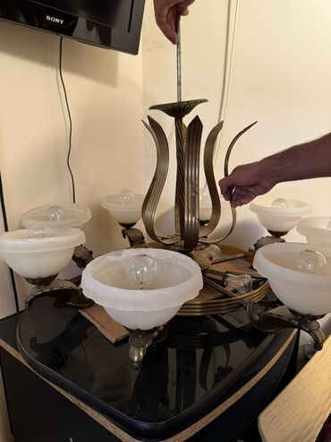 - Quraşdırma: mərkəzi tavan bazası, çoxşaxəli metal qollar; elektrik qoşulmasına hazır.