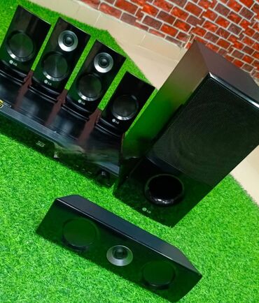 LG ev kinoteatrı – tam dəst 5.1 - Brend/model: LG (DVD receiver + 5.1 akustika) - Dəst: 4 ədəd hündür “tower” ön/arxa kolonka, 1 ədəd mərkəzi kolonka, 1 ədəd aktiv sabvufer, DVD receiver/amplifika...