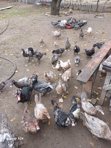 Musk ördəkləri (indo) – müxtəlif rənglərdə sürü. - Qara-ağ, ağ, boz-yaşıl lələklər; həm erkək, həm dişi fərdlər görünür. - Sakit xasiyyətli, soyuğa davamlı və açıq havaya uyğun. - Tətbiq sahəsi: ət...