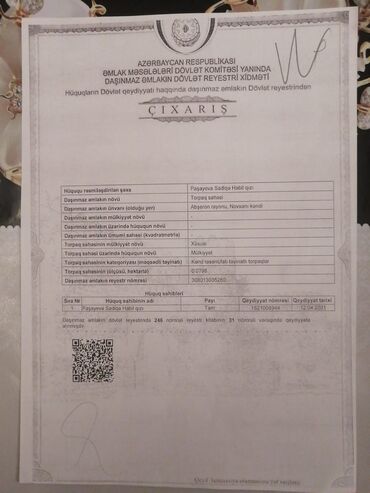 1 sot, Tikinti, Mülkiyyətçi, Kupça (Çıxarış)