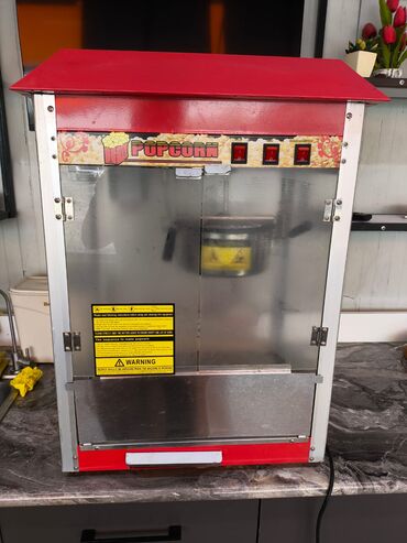 Məhsul: Popkorun aparatı və termo qazan (qarğıdalı bişirən) - Popkorun aparatı: Şüşə vitrinli korpus, elektriklə işləyir, daxildə qarışdırıcı qazan və isitmə sistemi var. Kənarları qırmızı üstlük,...