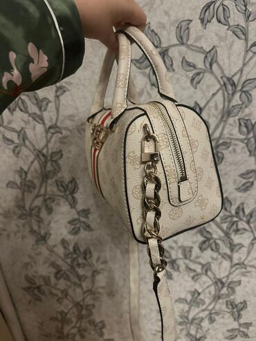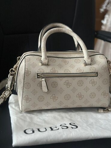 Yenidir etiketliGuess markasına aid, bej rəngli, toxunma dizaynlı, qapaqlı çanta. Çanta qızılı rəngli "GUESS" loqosu ilə bəzədilib. Yaxasında metal aksentli loqo detallı bir qayış var. Çanta rahat ...