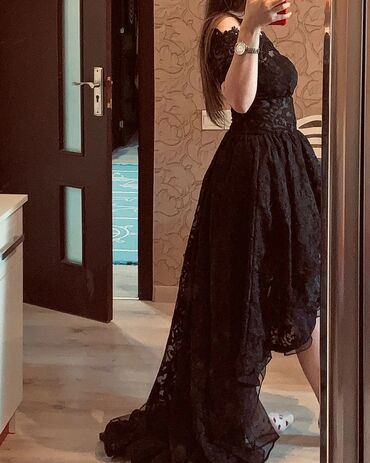 - Etek: ön tərəfi qısa, arxası uzun “hi-low” siluet; çoxqatlı krujeva qatları və axıcı quyruq effekti