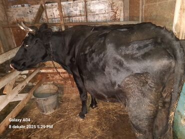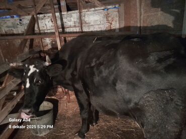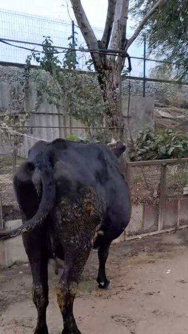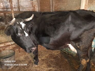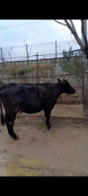 Qara rəngli inək satılır - Cins: yerli mal-qaraya uyğun, möhkəm bədən quruluşu - Rəng: tam qara, alnında azca açıq ləkə - Buynuzlu, boyun hissəsində zəncirlə asanlıqla bağlana bilir - Sakit və çev...