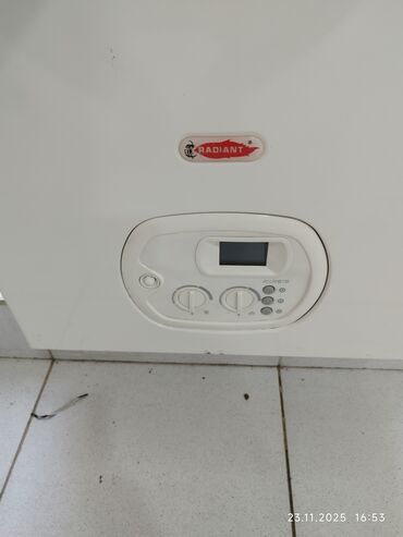 Radiant divar tipli qaz kombi (iki konturlu) Xüsusiyyətlər: - Marka/model: Radiant (ön paneldə loqo). - İki konturlu sistem: həm isitmə, həm də isti su üçün. - Divara quraşdırılan korpus. - Ön ida...