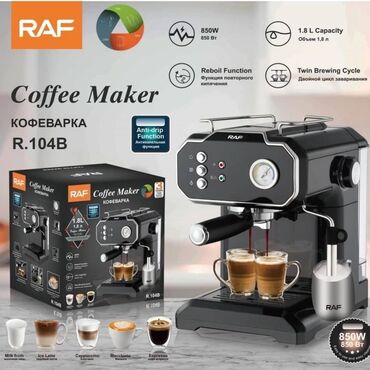 RAF Coffee Maker R.104 seriyası – evdə espresso və süd əsaslı içkilər üçün yarıavtomat kofe aparatıdır. Əsas xüsusiyyətlər: - Güc: 850W - Su bakı tutumu: 1.8 L və ya 2.0 L (modeldən asılı olaraq R...