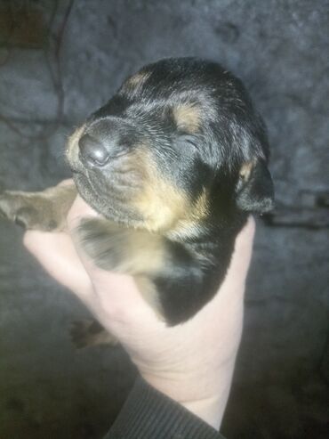 Rottweiler balaları – güclü quruluş, klassik qara-qızılı rəng - Cins: Rottweiler (saf cins görünüşlü) - Xüsusiyyətlər: geniş baş, qısa sıx tük, iri sümük quruluşu, güclü döş qəfəsi - Rəng: qara fo...