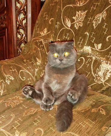 Şotlant yastı qulaq pişik - Cinsi: qısa tüklü, boz (solid grey) - Qulaqlar: yığılmış/qatlanmış tip (fold) - Göz rəngi: sarı-qızılı çalar - Xarakter xüsusiyyətləri: sakit, mehriban, qucağı sevir, e...