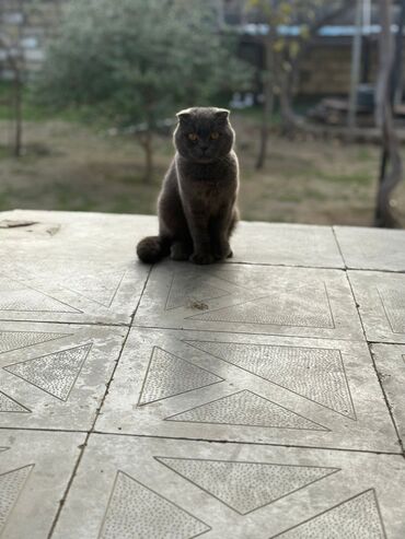 Şotland qıvrımqulaq pişiyi – boz (blue) rəngli, qısa tüklü. Cüt vurmaq istey elaqe saxlasin - Cins: Scottish Fold - Rəng: Bərk boz (blue), qısa və yumşaq tüklər - Qulaqlar: İrəli qatlanmış, cinsəxa...