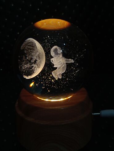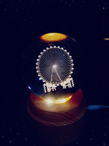 Futbol mövzusunda 3D dekorativ kub - Material: şəffaf akril korpus, güzgü əsas və arxa fon; içəridə kəsmə 3D fiqur kompozisiyası - Dizayn: məşhur futbol ulduzları və klubların rəngləri/loqoları il...