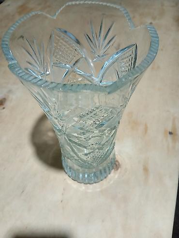 - Kəsimli naxışlı şüşə vaza: Ağız hissəsi lalə formalı dalğalı kənarla, bədəndə klassik kəsmə ornamentlər (romb və bitki motivləri). Orta ölçülü buketlər üçün uyğundur, masaüstündə dekor kimi gözəldir.