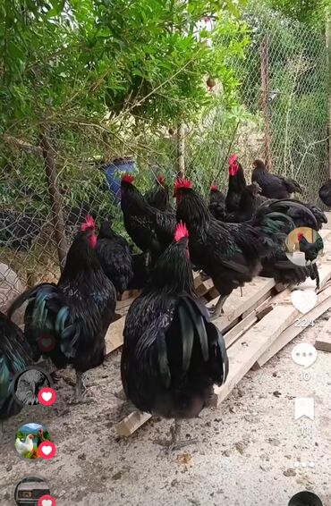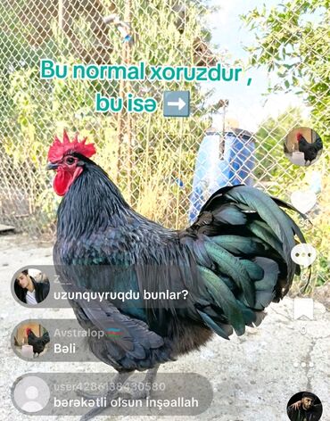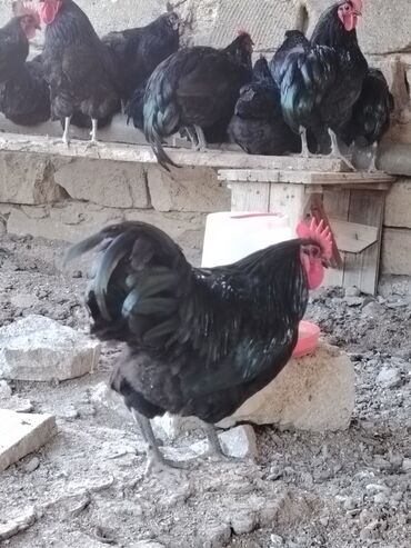 - Qara toyuq/xoruzlar: parıltılı yaşıl lələklər, boz-gümüşü ayaqlar, iri qırmızı daraq və sakal. Geniş həyət və qəfəs şəraitinə uyğunlaşır.
