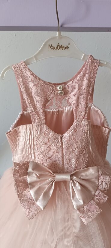 Uşaq üçün zərif ziyafət/libas paltarı - Rəng: pudra-çəhrayı - Üst hissə: parıltılı payetlərlə bəzədilmiş büst - Parça: çoxqatlı tull və atlas astar - Dizayn: şəffaf askılar, hər iki qolda iri tull...