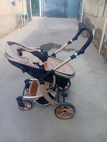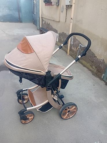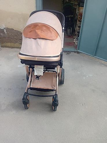 Uşaq arabası – beşik tipli, krem rəngdə, qızılı/bronz şassili model. Cox az istifade olunub. Yeniden secilmir. Real aliciya qiymetde endirim olacaq.