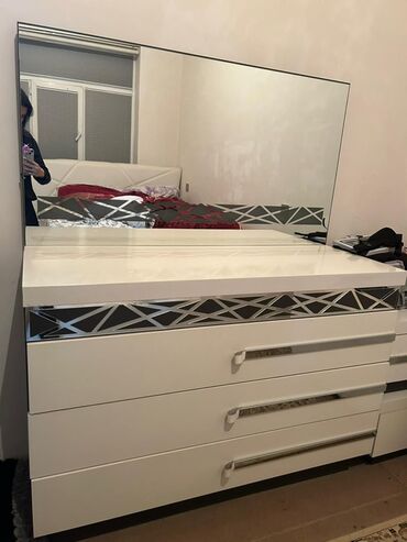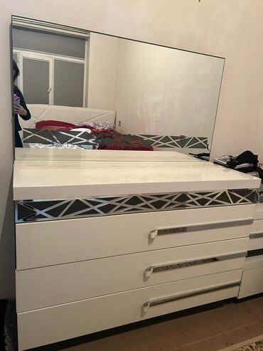TƏCİLİ SATILIR YATAQ DƏSTİ, YAXŞI VƏZİYYƏTTƏDİR SƏLİQƏLİ İŞLƏDİLİB. 1paltar dolabı (çox geniş və funksionaldır qapılar roliknəndir şalvar asmaq üçün ayrıca veşilkası var özündən), güzgülü termosu i...