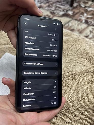 Salam,Iphone 11 64/4 satilir.Telefon tam ideal veziyetdedir,hecbir problemi yoxdu,pil arijinal 75%,ekran arijinaldir bir sozle her bir detal arijinaldi.Tru tone aktif face id aktif.Telefon ilk elde...