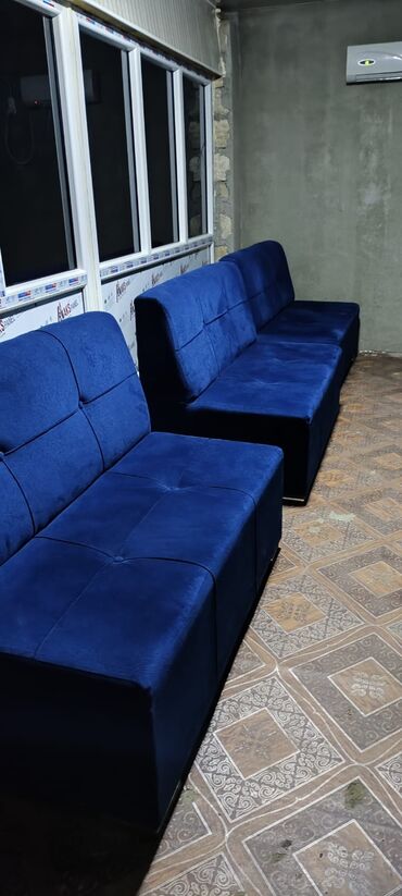 - Dərin mavi rəngdə, yumşaq parçadan 3 ədəd rahat oturacaq/divan modulu. Arxa dayağı və oturacaq hissəsində kvadrat tikişli dizayn, qalın süngərli oturacaq. Modul quruluş sayəsində yan‑yana və ya ayrı istifadə oluna bilər.
