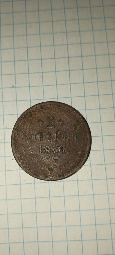 Antik sikkə – Rusiya İmperiyası, 2 kopek, 1851 Xüsusiyyətlər: - Nominal: 2 kopek - Buraxılış ili: 1851 - Material: mis (klassik imperiya mis tərkibli) - Ön tərəf: rus dilində “2 копейки 1851” yazı...