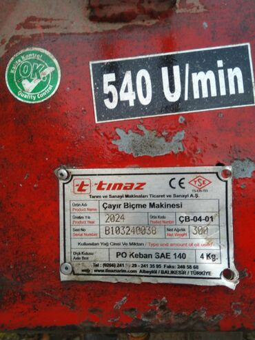 Tınaz Çayır Biçmə Maşını - Model: CB-04-01 - İstehsal ili: 2024 -