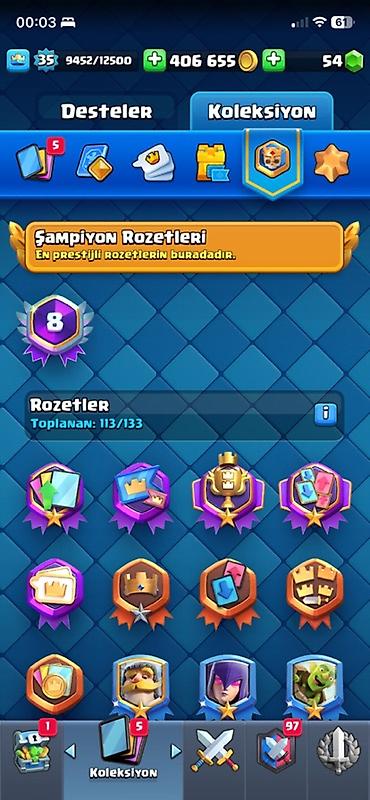 - Koleksiya/rozetlər: 113/133 toplanıb, “Şampiyon Rozetləri” bölməsi aktiv
