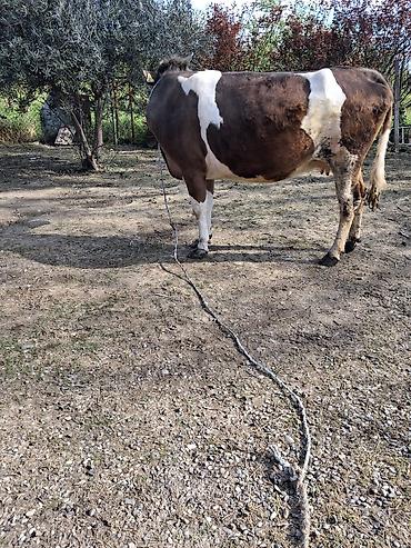 Məhsul: Simental tipli inək Xüsusiyyətlər: 6 aylıq bogaz - Rəng: Ağ-qonur ləkəli - Buynuzlu, boyunluqda kəmərli - Bədən quruluşu iri, əzələli - Süd və ət istiqaməti üçün uyğun Simental tip - Açıq ...