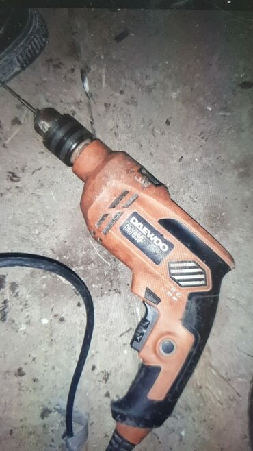 - Daewoo DAD 650 şnurla qoşulan zərbəli matkap. Korpus üzərində sürüşməyə qarşı rezin əlavələr, iki istiqamətli fırlanma (Reverse) düyməsi, tənzimlənən sürət çarxı və üst hissədə zərbə rejimi işarələri görünür. Açarla sıxılan metal patron, uzun şnur.