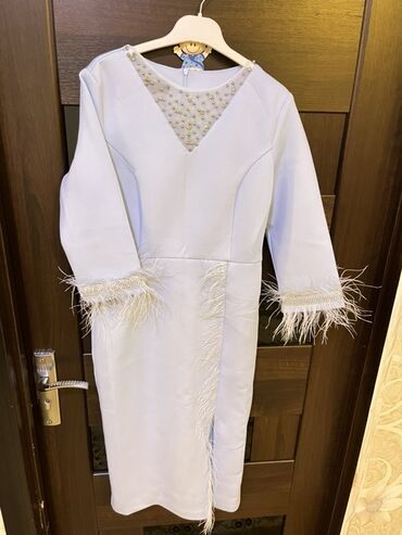 - Dizayn detallar: ətək hissəsində yan tərəfdə tük (perya) dekoru və yüngül yarıq