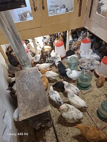 - Qidalanma: dən və kombikorma uyğun; şəkillərdə asma yemliklər və şüşə suvarmalarla saxlanılır