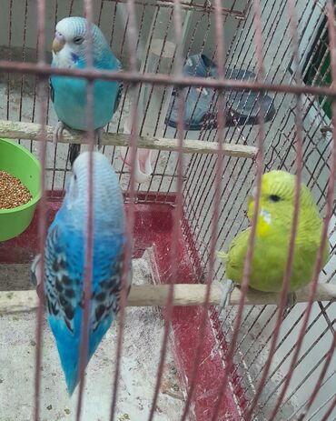 Məhsul: Ev quşları və qəfəs dəsti Təfərrüatlar: - Növ: Nimfa papuqayları (Cockatiel) – bir neçə fərqli rəng (boz, ağ-sarı başlı, ləkəli) - Qəfəsdə əlavə olaraq 1 ədəd dalğıç/budaqcıq növü dalmati...
