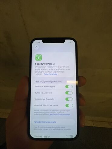 - Face ID mövcuddur; iPhone-un kilidini açma, iTunes və App Store, təmassız ödənişlər, avtomatik parol doldurma üçün aktivdir (ekran görüntüsündə göstərilib)