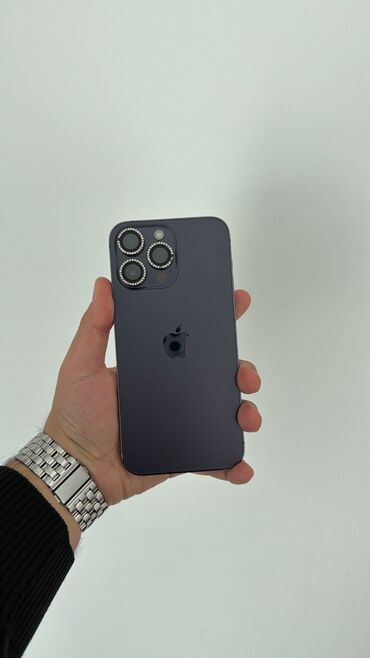 Bənövşəyi rəngdə, müasir dizaynlı Apple iPhone 14 Pro max smartfonu. Üçlü kamera sistemi yüksək keyfiyyətli şəkillər çəkməyə imkan verir. Ustada olmayıb ciziq yoxdur pil 79% 128GB yeni telefon iste...