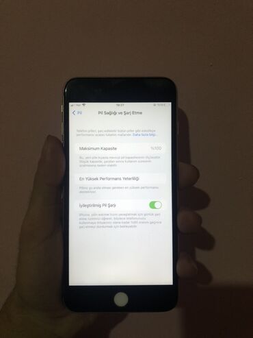 - iOS sistemində “Pil Sağlığı” bölməsində maksimum tutum 100% göstərilir; “İyileştirilmiş Pil Şarjı” aktivdir