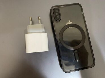 IPhone X (5.8") + adapter - Model: Apple iPhone X, qara rəng - Arxa tərəf: şüşə, dik yerləşimli ikili kamera modulu və LED flaş - Ekran: tam ekran, Face ID üçün ön tərəfdə həssas sistem (sensorlar...