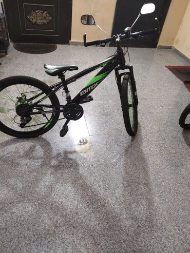 iki velosiped cəmi 300 AZN BMX brendli dağ velosipedi - Rəng: qara/yaşıl - Çərçivə: BMX loqolu alüminiuma bənzər möhkəm gövdə - Təkərlər: 24 düymə yaxın iri off-road şinlər, yaşıl şpirlər - Amorti...