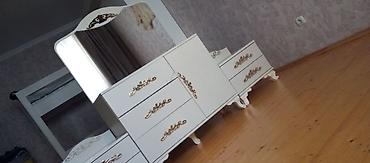 Yataq otağı dəsti – klassik krem-qızılı dizayn Komplekt: - 2 qapılı güzgülü qarderob (dolab ölçüsü: 200×160×47 sm; asılqan, rəf və bölmələr) - 2 ədəd tumbə - 3 çekmecəli komod - Başlıqla birlikdə ...