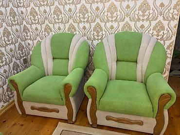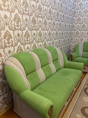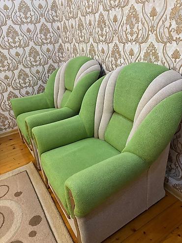 Yaşıl-krem rəng çalarlarında yumşaq mebel dəsti