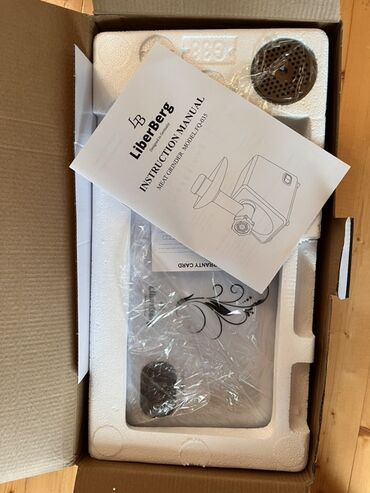 - Aksesuarlar: ət basqısı (pusher), müxtəlif deşikli üyüdücü disk(lər)i, nozzle-lar; şnurla birlikdə