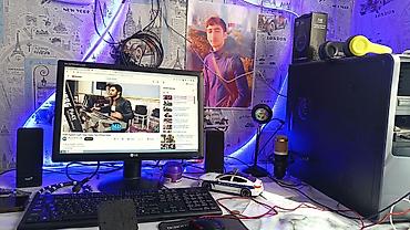 Masaüstü kompüter dəsti Tərkib: - Sistem bloku (qara korpus, ön paneldə güc düyməsi və ventilyasiya barmaqlığı, üst hissədə LG markalı DVD-RW optik sürücü) - LG monitor (flatscreen, dairəvi dayaq ...
