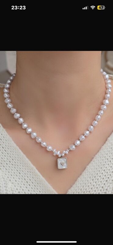 - Material: ağ rəngli incilər (düzgün olmayan barok/yuvarlaq formalı dənələr), aralarında kiçik metal aralıqlar