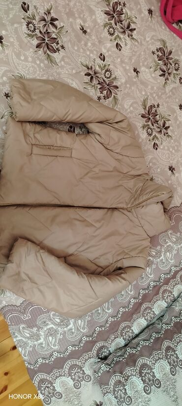 Qısa şişmə qış gödəkçəsi - Rəng: açıq-boz/bej ton - Model: qısa, oversize kəsim - Bağlanma: gizli fermuar və əlavə düyməli planka - Kapüşon: qalın parça, tənzimlənən iplərlə - İsti dolğu: horizont...
