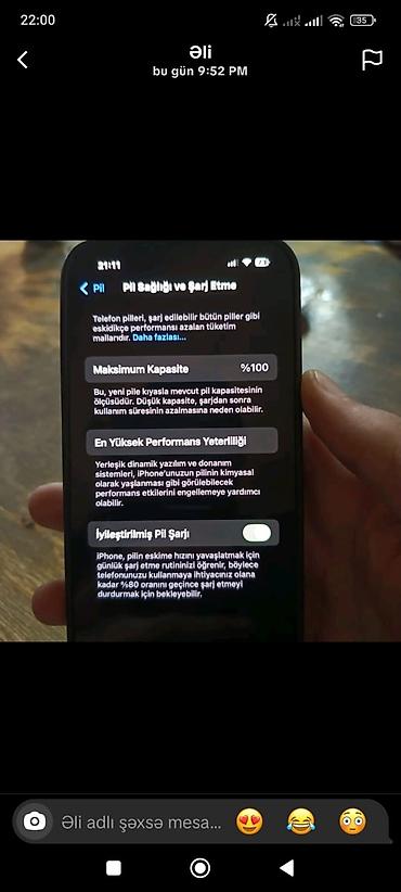 - Batareya sağlamlığı: 100% (Pillər > “Maksimum Kapasite %100” görüntülənir)
