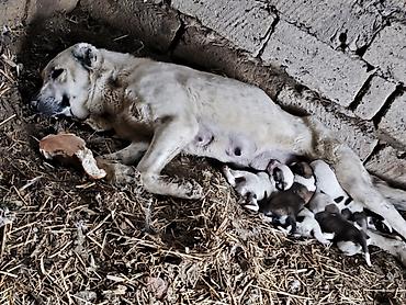 Balaca çoban iti balaları - Cins: iri cüssəli yerli çoban tipli (quzu-qoçu, həyət-baca və təsərrüfat üçün) - Ana it yerindədir, balalarla birlikdə böyüyür - Rənglər: açıq krem/bej tonları, qara ma...