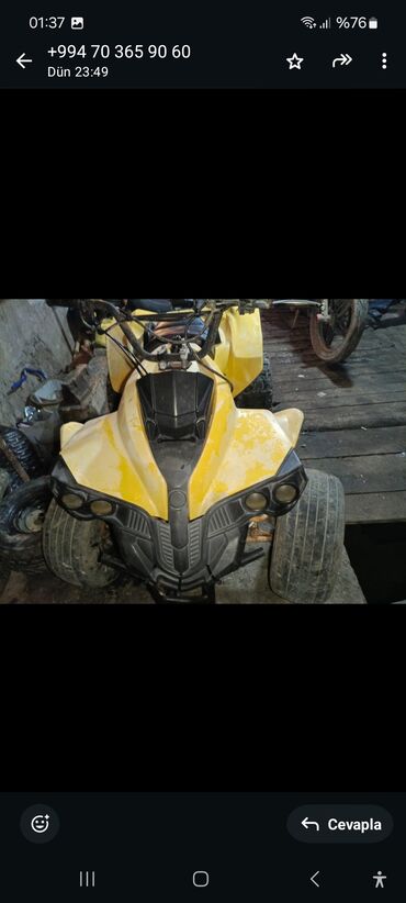 Sarı rəngli 4 təkərli ATV (kvadrosikl)