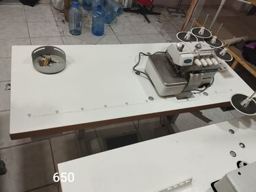 - DOT overlok (overlock) maşını – 4/5 saplı kənar emalı və birləşdirmə tikişləri üçün. Tezliklə kənar səliqələndirmə, trikotaj və elastik parçalar üçün uyğundur. Masada sap stendi, ölçü xətti və iş səthi yerləşir. (Şəkildə “650” qeyd olunub)