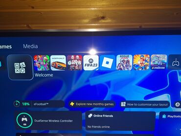 - PS5 interfeysi quraşdırılıb, ekran şəkillərində görünən oyunlar: eFootball, Asphalt, UFC5, FIFA 23, Roblox, Rogue Company, Disney Speedstorm və s. (mövcudluq hesab/kitabxana ilə əlaqəli ola bilər)