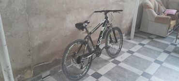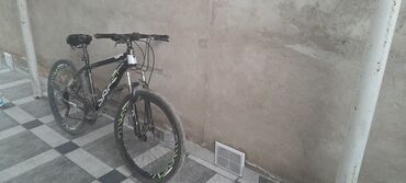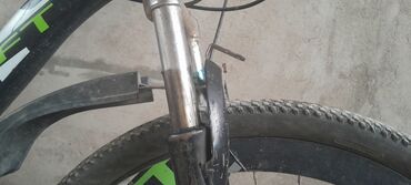 - Təkərlər: 26" disklər, yaşıl dekorlu, iri dişli dağ şinləri
