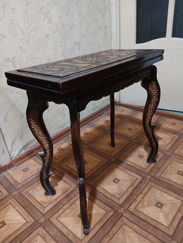 - Dizayn: üst səthdə və kənarlarda şərq üslublu oyma ornamentlər, dalğalı formalı dekorativ ayaqlar.